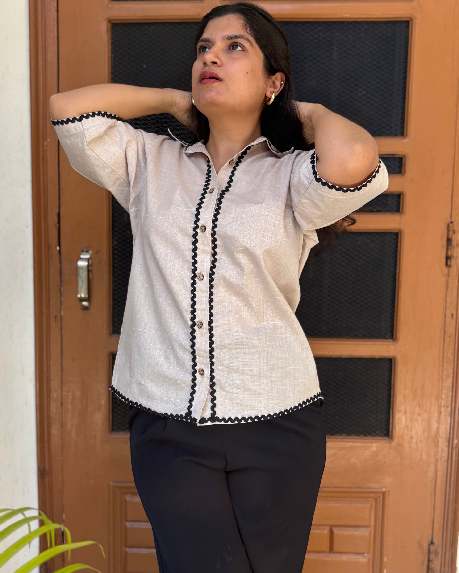 Elevate your wardrobe with this classic Beige Cotton Linen Shirt, designed for ultimate comfort and effortless sophistication. Crafted from a premium cotton-linen blend, this piece offers a lightweight, breathable feel—perfect for any season.